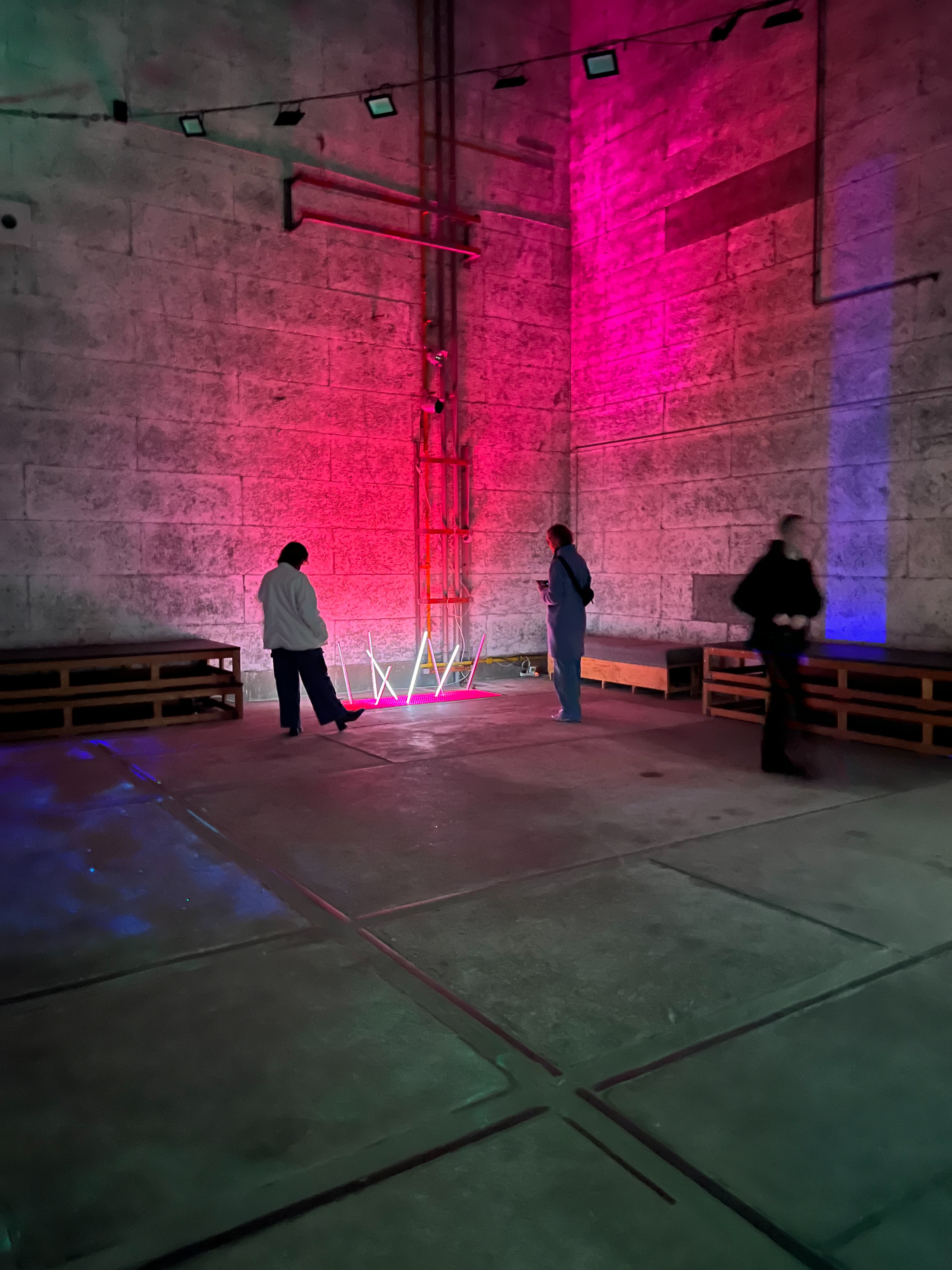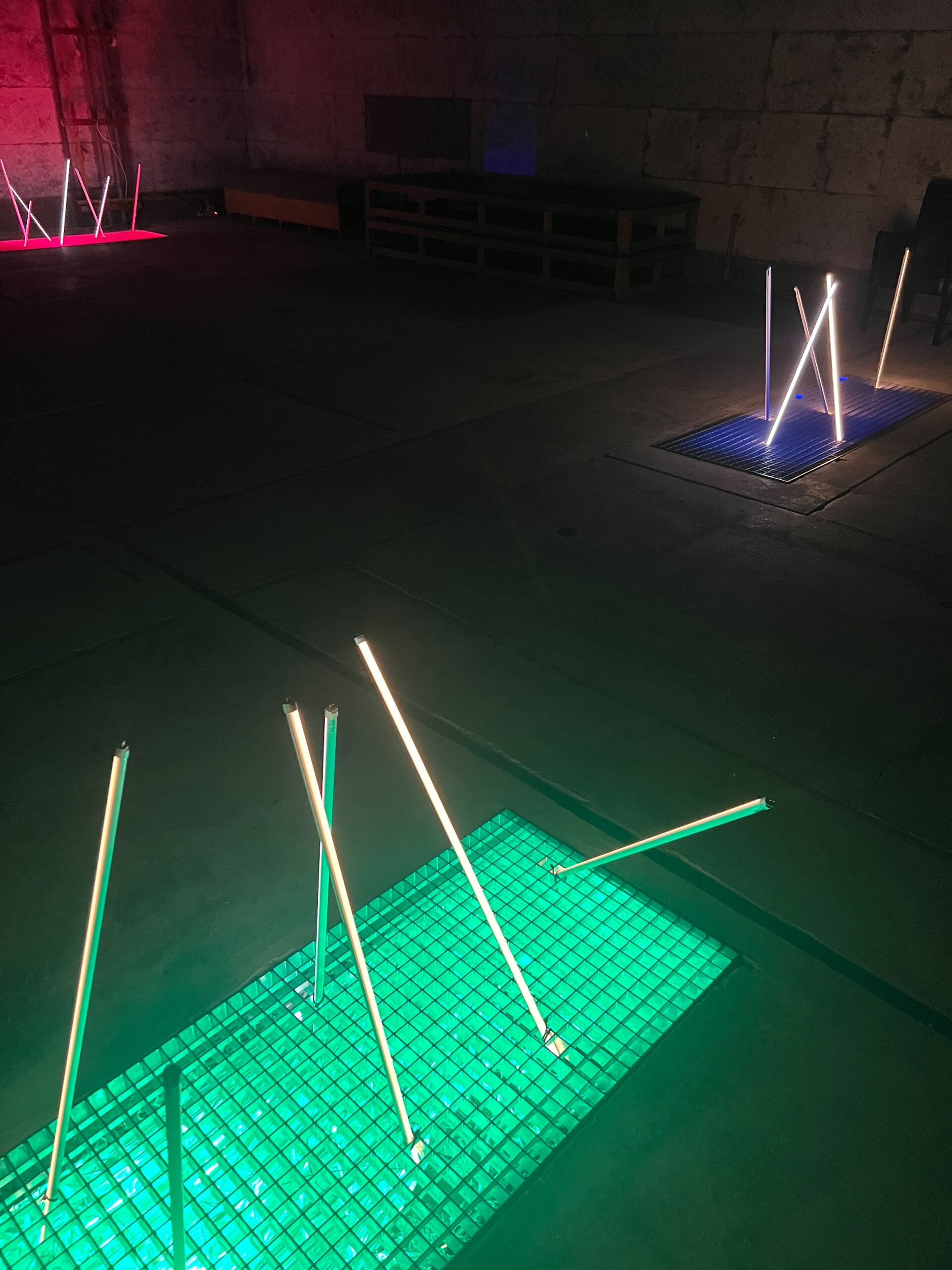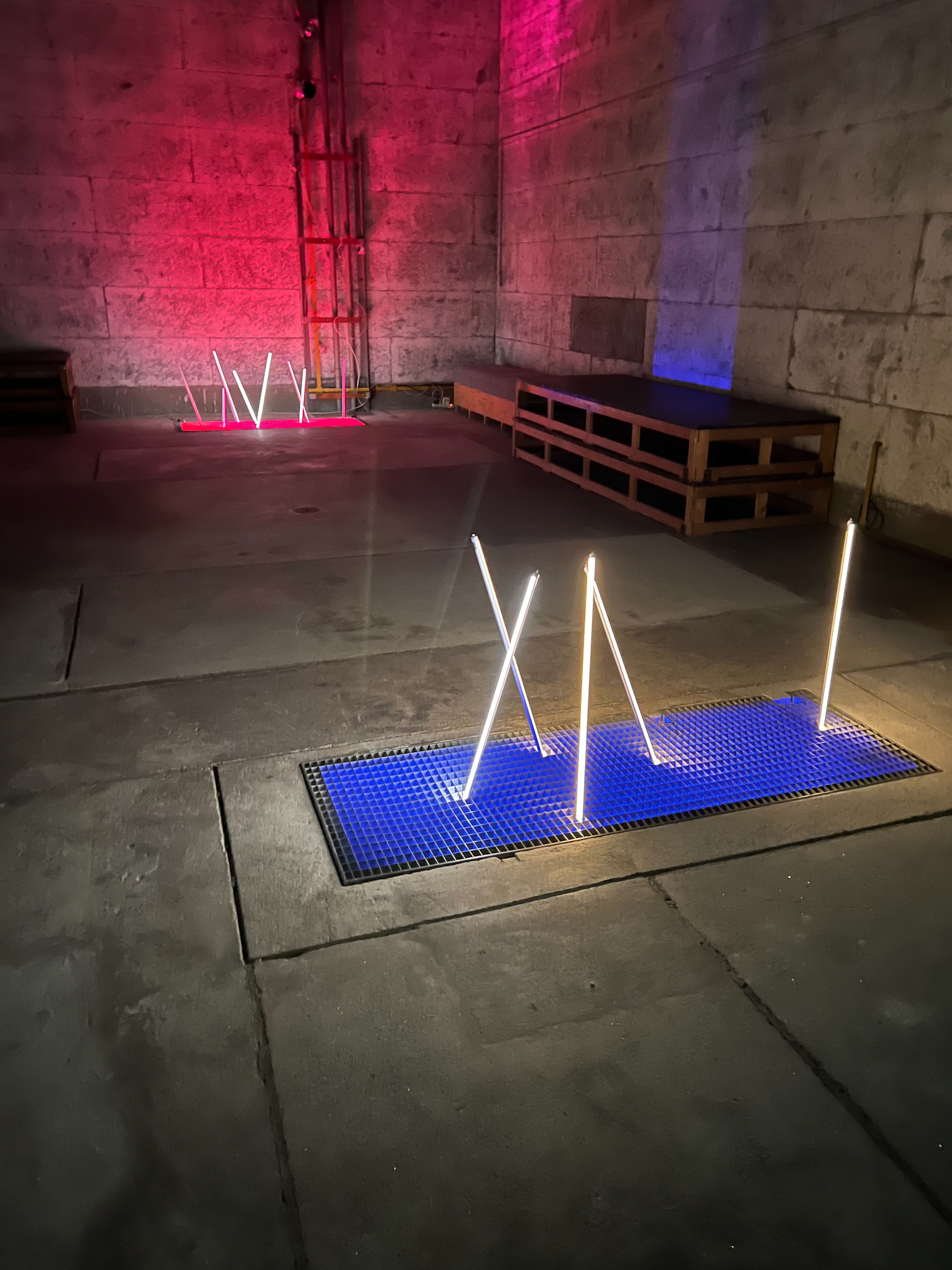 Neben der Organisation realisierte ich eigene Lichtinterventionen, die sich mit Licht- und Raumwahrnehmung auseinandersetzen. Meine Arbeiten entstehen im Dialog mit dem Ort und den Menschen, die ihn für eine Nacht mit Leben füllen.